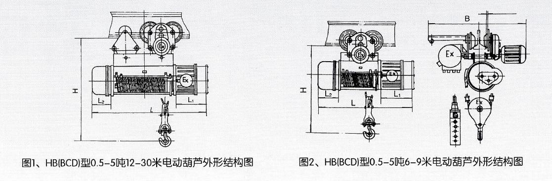 二、HB型防爆鋼絲繩電動葫蘆適用于工廠內(nèi)具有防爆級別不高于B級或C級,引燃溫度組別不低于T4(135℃ )組的可燃性氣體、蒸汽與空氣形成的爆炸性氣體環(huán)境中,所適用的危險區(qū)域?yàn)?區(qū)或2區(qū),不適用于0區(qū)。